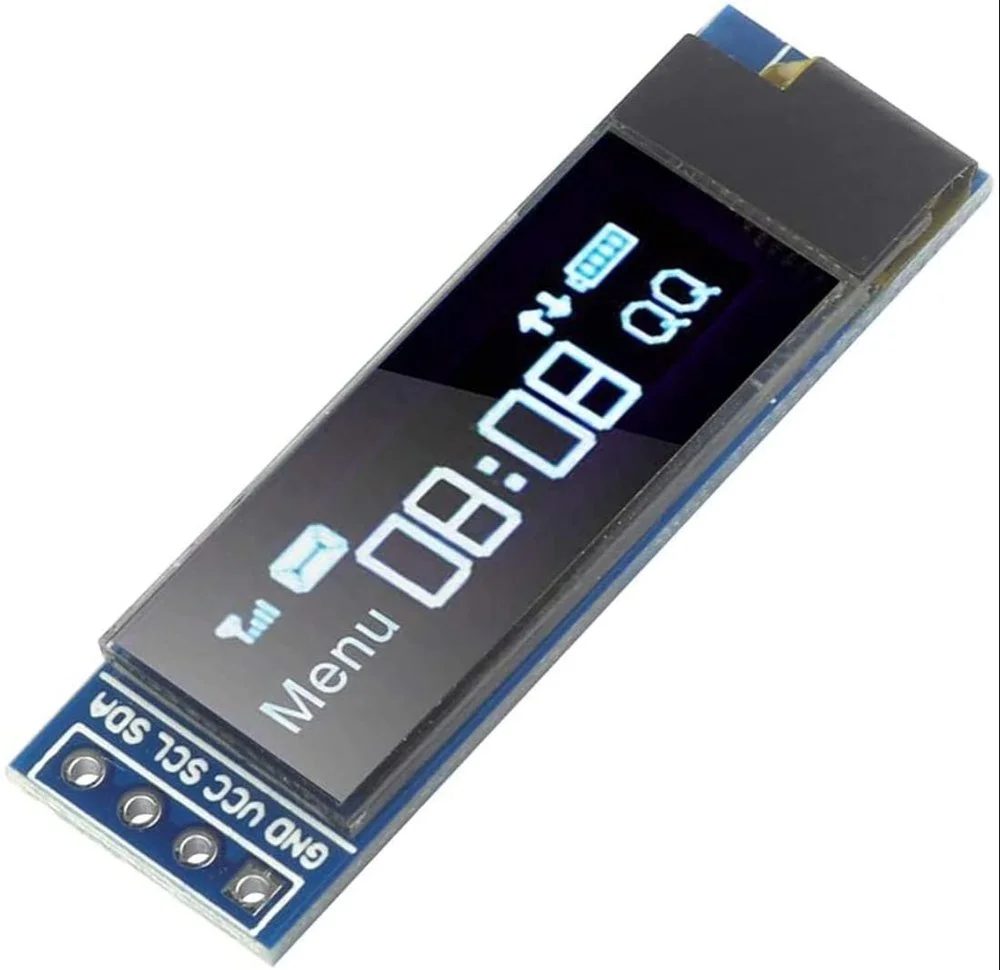 This is a general OLED display Module, 0.91inch diagonal, 128×32 pixels, with embedded controller, communicating via I2C interface.