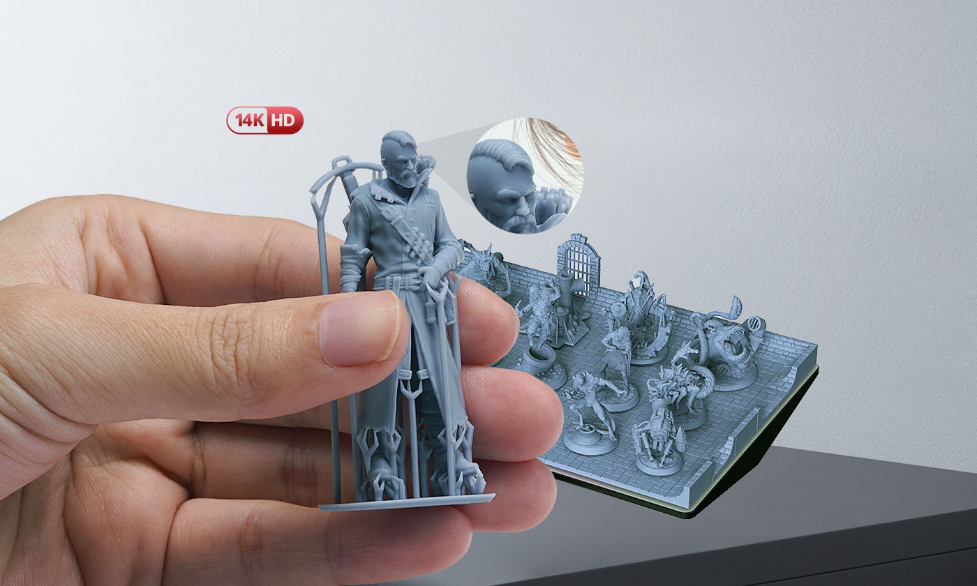 The 14K high-precision resin, ideal for miniatures and intricate scenes, delivers 0.15mm accuracy with ultra-fine tips at 0.02mm—half the width of a human hair. It offers 40% higher precision than any other existing 14K resins on the market.