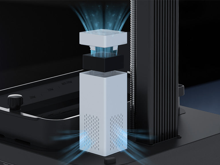 The 18mm high-density activated carbon filter, weighing 17 grams, is designed to efficiently capture and neutralize odor molecules produced during printing.